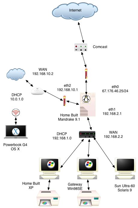 http://www.schelin.org/imgs/proposed.home.network.jpg Ahh, it works. Ok, this is the home network although the printer that was attached to the XP box is now attached to the Linux box, aannnnd we're back on topic :) Sorry all; it's tough not to greet a fellow biker wherever you find him or her. Carl |