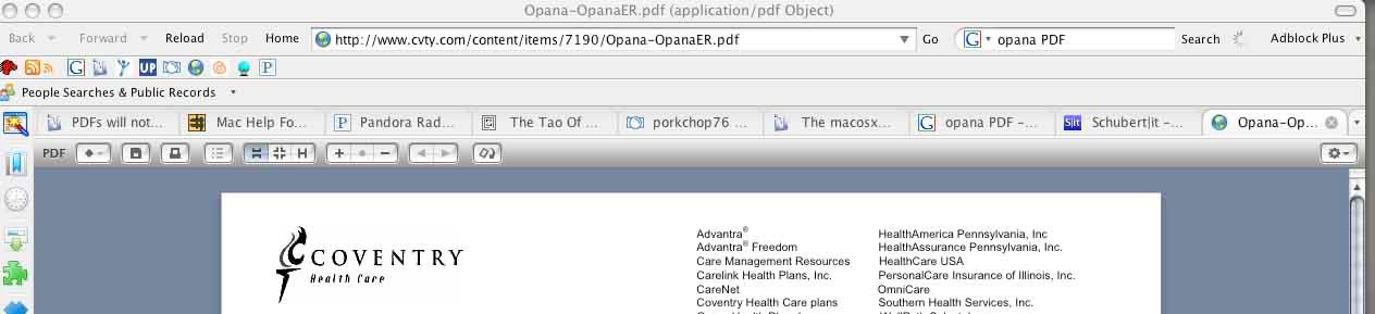 In his thread, I mentioned that I couldn't get FF to open a pdf in a tab, but that it always downloaded the file and asked me with which app I'd like to use to open it. That was where the thread became hijacked, as subsequent posts dealt with my problem. As I'm beginning to create this new thread, the OP from that other thread hasn't again posted in it. I'm not sure if his problem is solved, but I'm not going to keep posting in that thread. If someone is interested, that thread is: http://forums.macosxhints.com/showthread.php?t=79779 So, regarding my question. I'm trying to get pdf files in Firefox 2.0.0.8 on our macbook pro, running os 10.4.10, to open in a tab, just like they would if I were using Safari. Among the options mentioned in that other thread, was this plug-in, PDF Browser which works just fine for my FF on my PPC G4 mini. However, PDF Browser is only written for PPC machines. I had also tried PDF Downloads, another suggestion from that other thread, but I think it's more of a solution for that thread's original poster. It didn't seem to change FF's behavior. FF again just downloaded the pdf. Is anyone aware of a way to get FF on an intelmac to open a pdf within the browser? As mentioned above, it's 10.4.10, FF 2.0.0.8, and Adobe Reader is v8. Adobe Reader v7 has known issues regarding pdf files on 'Gecko' based browsers. My wife (SHE WHO MUST BE OBEYED) is using the mbp, and I'm trying to have her use the mac apps rather than the vmwin apps via parallels. She's trying to view the bank statement pdf files on our online banking site. I'd like to have her stop saying, "it opens just fine in internet explorer." We had started using FF, because historically Safari does poorly on banking sites. It might turn out that Safari will be better than FF for this one. |