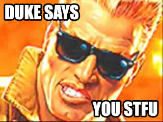 DUKE IS GOING TO TEAR OFF YOUR HEAD AND CRAP DOWN THE HOLE ALLLLLLLLLLLLL OUTTA GUM the mods need to grant me special permission to make all-caps posts |